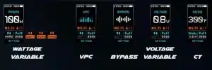 - Mode Volts Variable (VV) : Idéal pour les amateurs de reconstruction d’atomiseurs avec des coils faits main, ce mode offre une grande flexibilité.